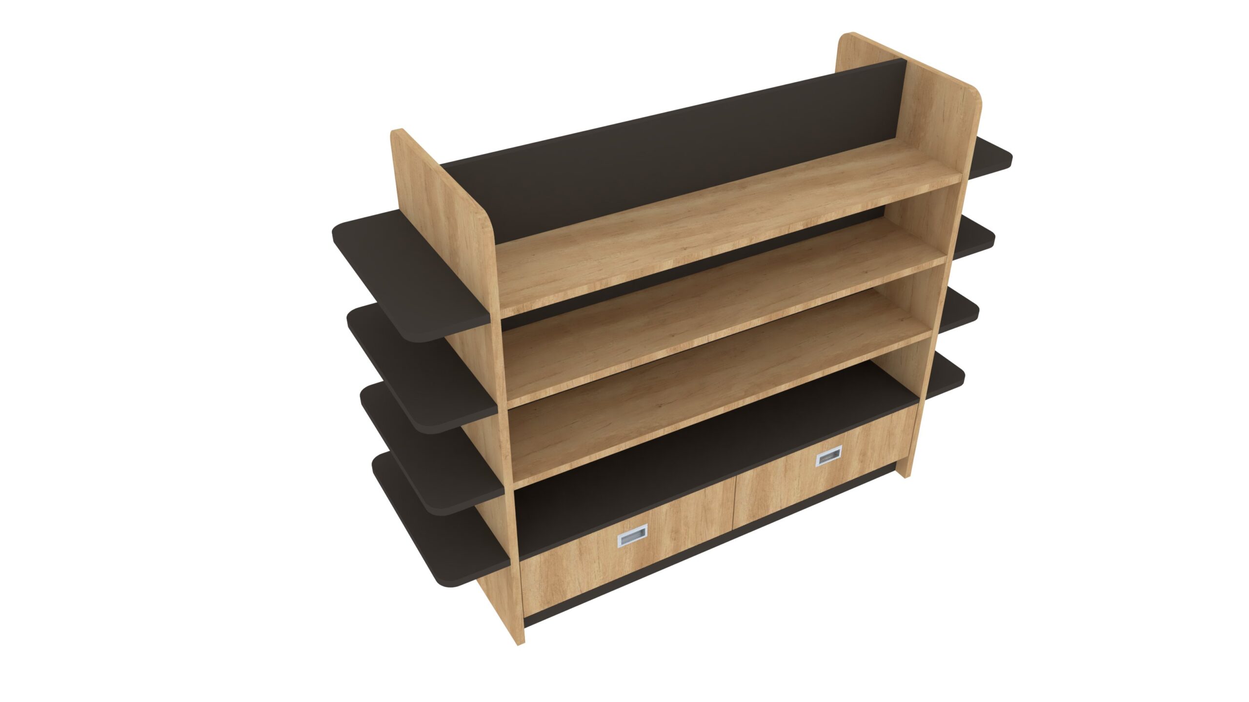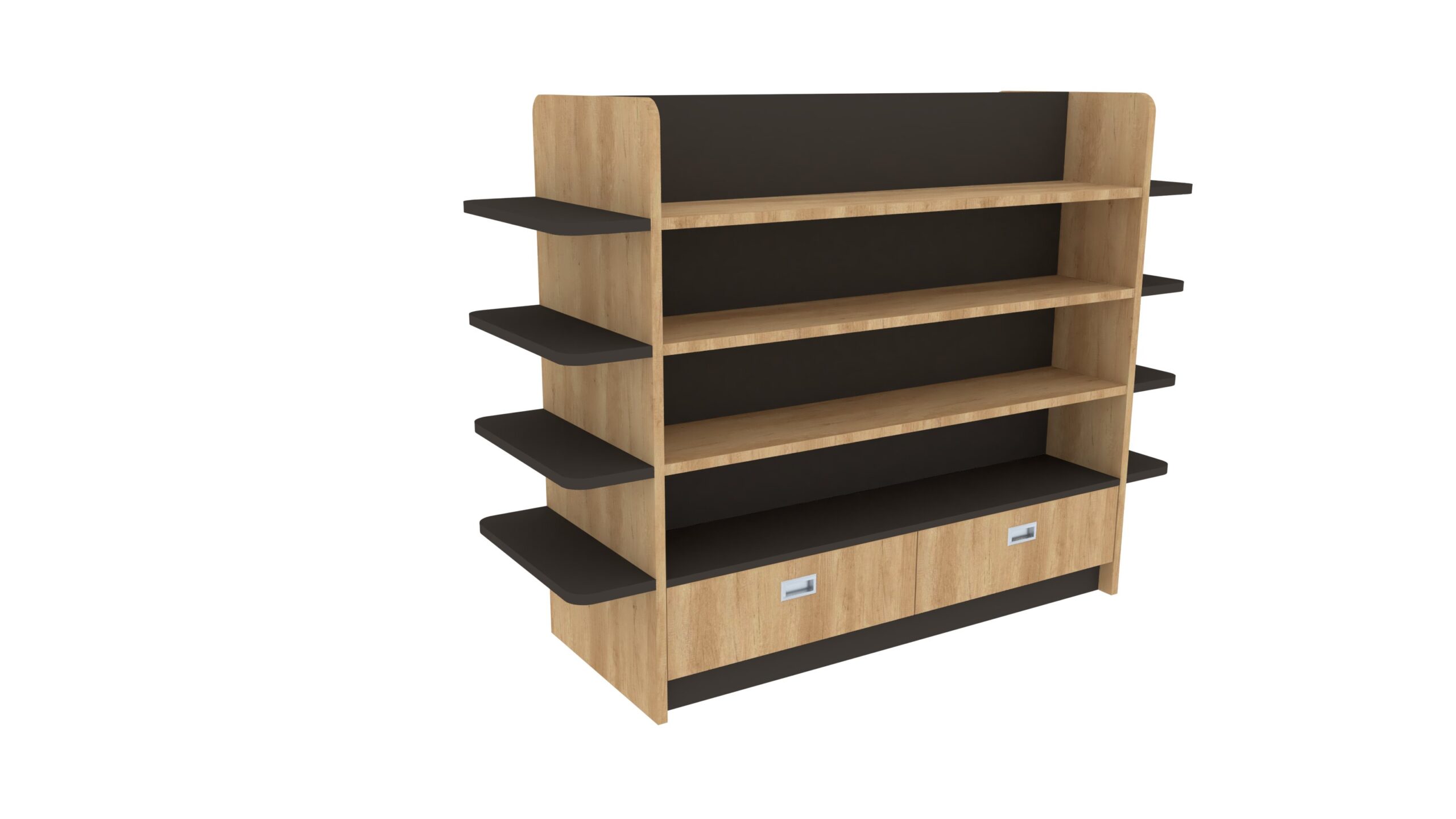 Διπλής όψης γόνδολα καταστήματος – Με ξύλινη & ανθρακί λεπτομέρεια
