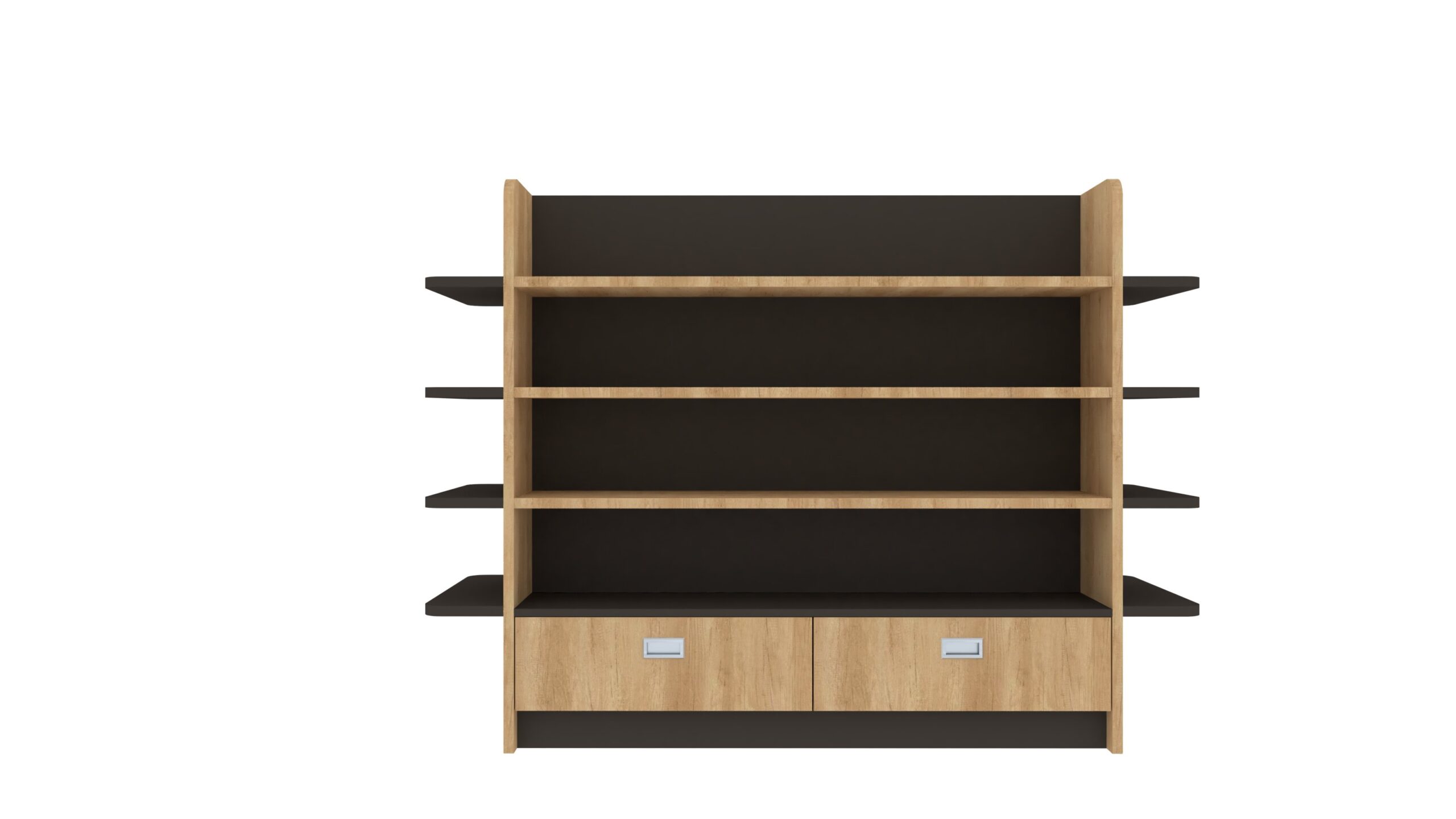 Κατασκευασμένη από μελαμίνη ή MDF υψηλής ποιότητας, η γόνδολα αυτή διαθέτει τέσσερα ευρύχωρα ράφια ανά πλευρά, ιδανικά για την προβολή τροφίμων, ειδών παντοπωλείου, προϊόντων προσωπικής φροντίδας ή άλλων ειδών λιανικής. Ο μοντέρνος συνδυασμός ξύλινης όψης με μαύρες λεπτομέρειες δημιουργεί ένα διακριτικό αλλά εντυπωσιακό αισθητικό αποτέλεσμα που ταιριάζει σε κάθε σούπερ μάρκετ, μίνι μάρκετ ή εξειδικευμένο κατάστημα.